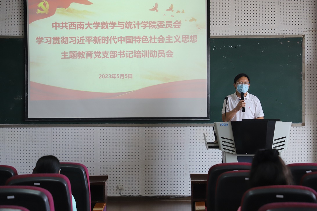 为持续推进学习贯彻习近平新时代中国特色社会主义思想主题教育走深走实,2023年5月5日下午,学院学习贯彻习近平新时代中国特色社会主义思想主题教育培训动员会于25教1403报告厅召开。学院各党支部书记、支部委员参加此次会议并就学院学习贯彻习近平新时代中国特色社会主义思想主题教育方案进行了学习。会议由学院党委书记唐宇主持。
