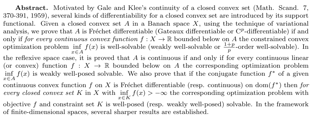 题目一: WELL-POSED SOLVABILITY OF CONVEX OPTIMIZATION PROBLEMS (凸优化问题的适定可解性)