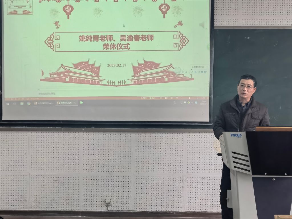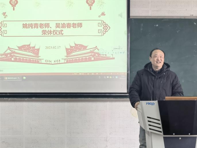 随后,姚纯青老师、吴渝春老师发表了荣休感言,他们回顾了各自的工作历程,感谢学校学院为他们成长成才提供的平台与帮助,祝愿学校学院的蓬勃发展、蒸蒸日上。他们表示,离岗不离心,将继续关注学校学院的事业发展,为学院学术科研、人才培养等提供意见建议、帮助指导。