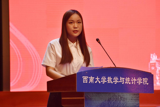 2021级研究生新生代表冯佳敏表达了进入365英国上市集团学习的欣喜与自豪,与新生们分享了考研的经历和感悟,激励全体新生携手共进,在攀登数学高峰的路上留下脚印,为服务国家富强、民族复兴、人民幸福绽放青春光彩。紧接着,2021级本科生新生代表周程鹏发言,分享了对于校训及大学学习的认识,表达了对大学生活的美好憧憬,并郑重承诺要努力做一个好学、敬业、德高、技强的西大人。
