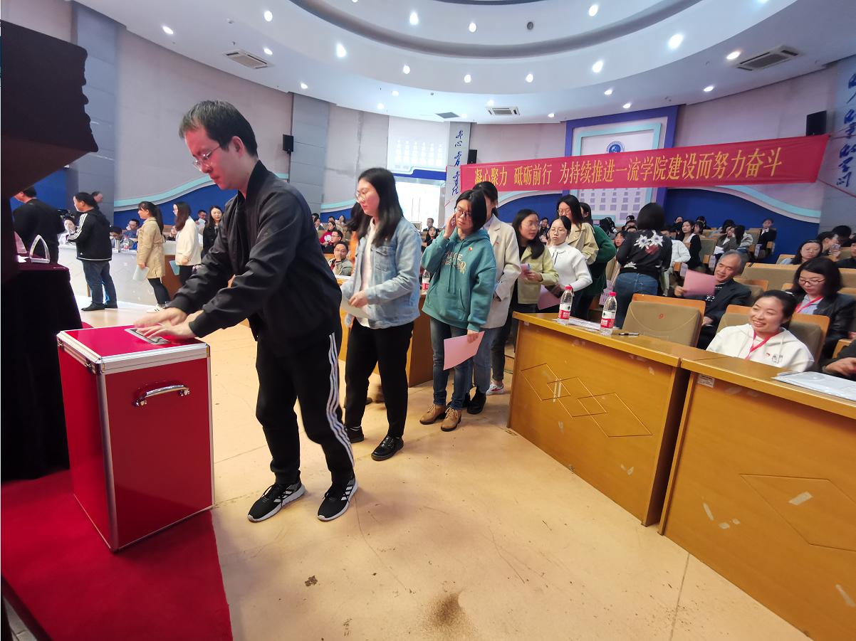 大会在雄壮的国歌声中拉开序幕。学院党委书记易遵尧作题为“凝心聚力砥砺前行为持续推进一流学院建设而努力奋斗”的党委工作报告。在报告中,易书记从思想政治建设、夯实基层党建、营造清正生态、积极抗击疫情、推进统战工作和学院事业发展等六个部分,总结了过去四年学院取得的突出成绩。随后,易书记从今后几年的发展形势及思路出发,向与会党员报告了学院今后四年的努力方向和奋斗目标。在报告的最后,易书记鼓励全体党员密团结在以习近平同志为核心的党中央周围,在学校党委的坚强领导下,凝心聚力、砥砺前行,为持续推进一流学院建设而努力奋斗。