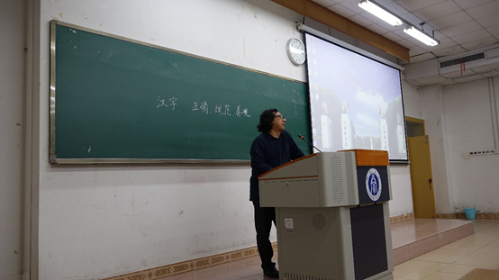 钟老师在简述了汉字发展史之后,就目前互联网中出现的各种语言文化现象,提出汉字书写首先是要做到准确、规范,再争取美观,才能出现书写到书法的巨大飞跃。