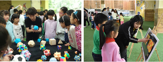 展览中,刘铁老师、冉思燕老师和我院志愿者们为孩子们系统地介绍了折纸的分类等有关折纸的基本知识,让孩子们充分感受折纸的趣味性与应用性,开拓了孩子们眼界,拓展了孩子们数学思维。