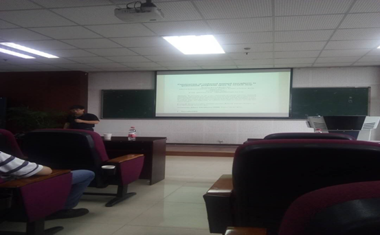 焦晓祥教授接着做了题为“Construction of conformal minimal two-spheres in quaternionic projection space by twistor map ”的报告。他介绍了国内外研究的现状及取得的主要成果,然后讨论了利用扭曲映射在四元射影空间中构建共形极小2维球面,涉及到调和序列和方程问题。