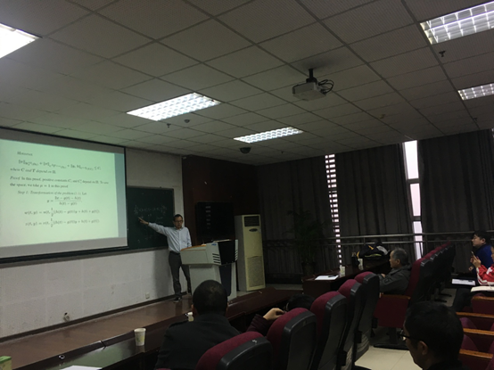 报告会上,王明新教授从SI传染病模型背景开始,介绍了具有退化扩散项SI传染病模型的自由边界问题,通过生活中一些常见病症出发,由浅入深,将生物问题提升至数学问题,在研究传染病灭绝还是蔓延的问题下得到了模型的阈值R0,并给出严谨的数学分析过程,引起了大家的极大的兴趣。报告会上,王明新教授一一解答了老师和同学提出的各种问题,并勉励同学们刻苦学习,献身科学。