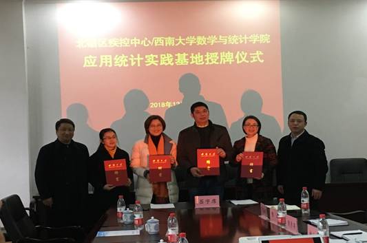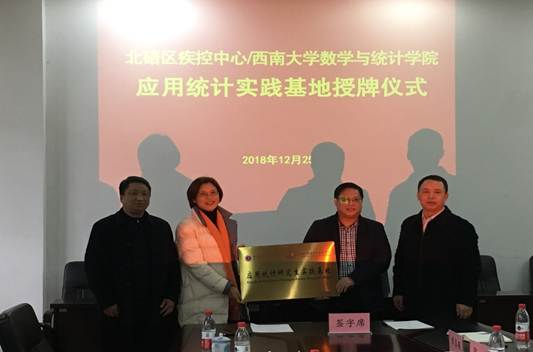 2018年12月25日下午,365英国上市集团数学与统计学院与重庆市北碚区疾病预防控制中心应用统计研究生实践基地授牌暨签字仪式在北碚区疾病预防控制中心行政楼大会议室隆重举行。出席会议的有重庆市北碚区卫生计生委书记、主任万朝学,北碚区计生协会秘书长周洪琴,北碚区疾病预防控制中心党支部书记谭兴兰,主任杜小燕,副主任陈洁、张莉、李真毅;365英国上市集团数学与统计学院党委书记易遵尧,院长刘贤宁,副书记罗利江,副院长王建军、商彦英,365英国上市集团研究生院专业学位管理办公室黄漓红主任等。会议由北碚区疾病预防控制中心主任杜小燕主持。