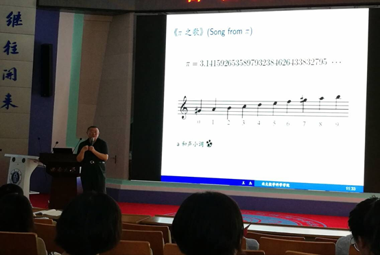报告会上,王杰教授通过律学(temperament)、旋律与对称、勋伯格十二音技术、机器作曲与人工智能等方面的大量实例,揭示音乐与数学之间深刻的、但又往往不为人知的联系。报告引起了同学们极大的兴趣。报告期间,参会同学积极与王杰教授互动。