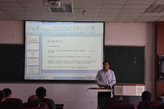 今年三月,第十三届全国人民代表大会第一次会议和中国人民政治协商会议第十三届全国委员会第一次会议在北京胜利召开,学习贯彻本次全国“两会”精神是当前一段时间的重要政治任务。2018年4月8日下午,我院教职工政治理论学习会在25教14楼学术报告厅举行,学院党委特别邀请全国政协委员、重庆市政协副主席、民进中央常委、重庆市委会主委、我院陈贵云教授传达“两会”精神。