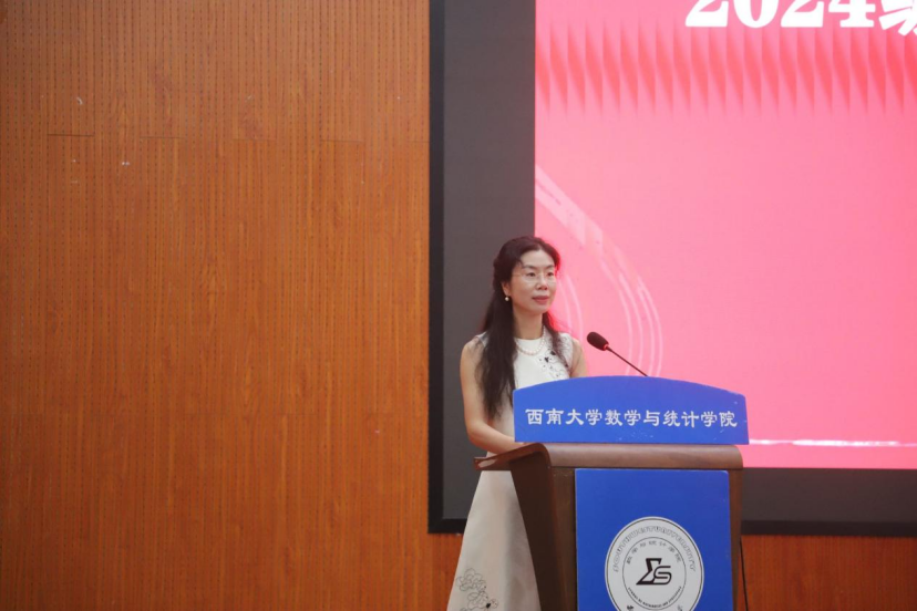教师代表吕颖教授以“学姐”和教师的双重身份展开一场跨越时空的对话,勉励新生在数学海洋和大学生活中独立思考、深入研究、夯实基础、广泛拓展、不懈畚斗,成为有思想,有本领,有志向,有作为的新青年。