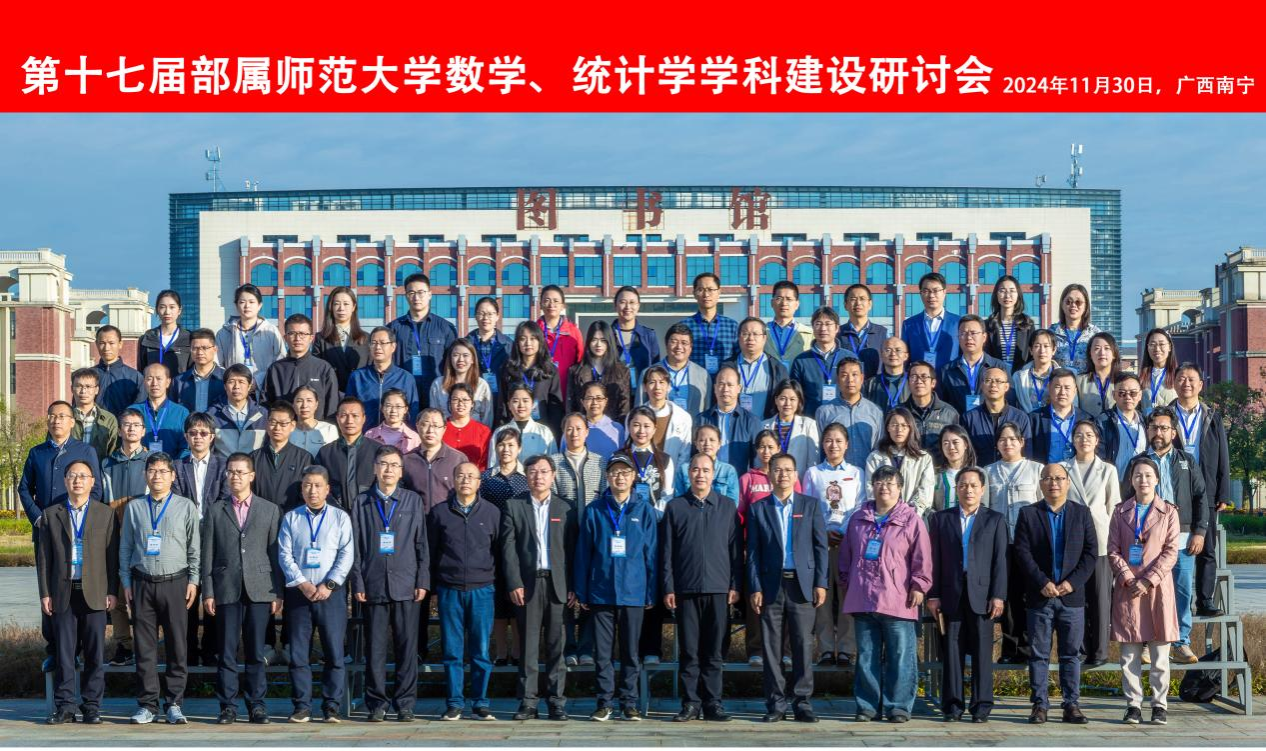 11月30日至12月1日,第十七届部属师范大学数学、统计学学科建设研讨会在南宁师范大学武鸣校区顺利举行,此次会议由我院主办,南宁师范大学、广西数学学会承办,会议的主题是“聚焦国家发展战略和深化教育综合改革形势,探讨师范大学数学及统计学学科发展的困境和出路,交流公费师范生本研衔接的培养策略”,来自北京师范大学、华东师范大学、东北师范大学、华中师范大学、陕西师范大学、365英国上市集团以及南宁师范大学、北部湾大学的60余位专家学者和学科负责人参会。学院党委书记唐宇、院长刘贤宁、党委副书记田春荣、副院长王建军以及教学秘书、部分辅导员参会。