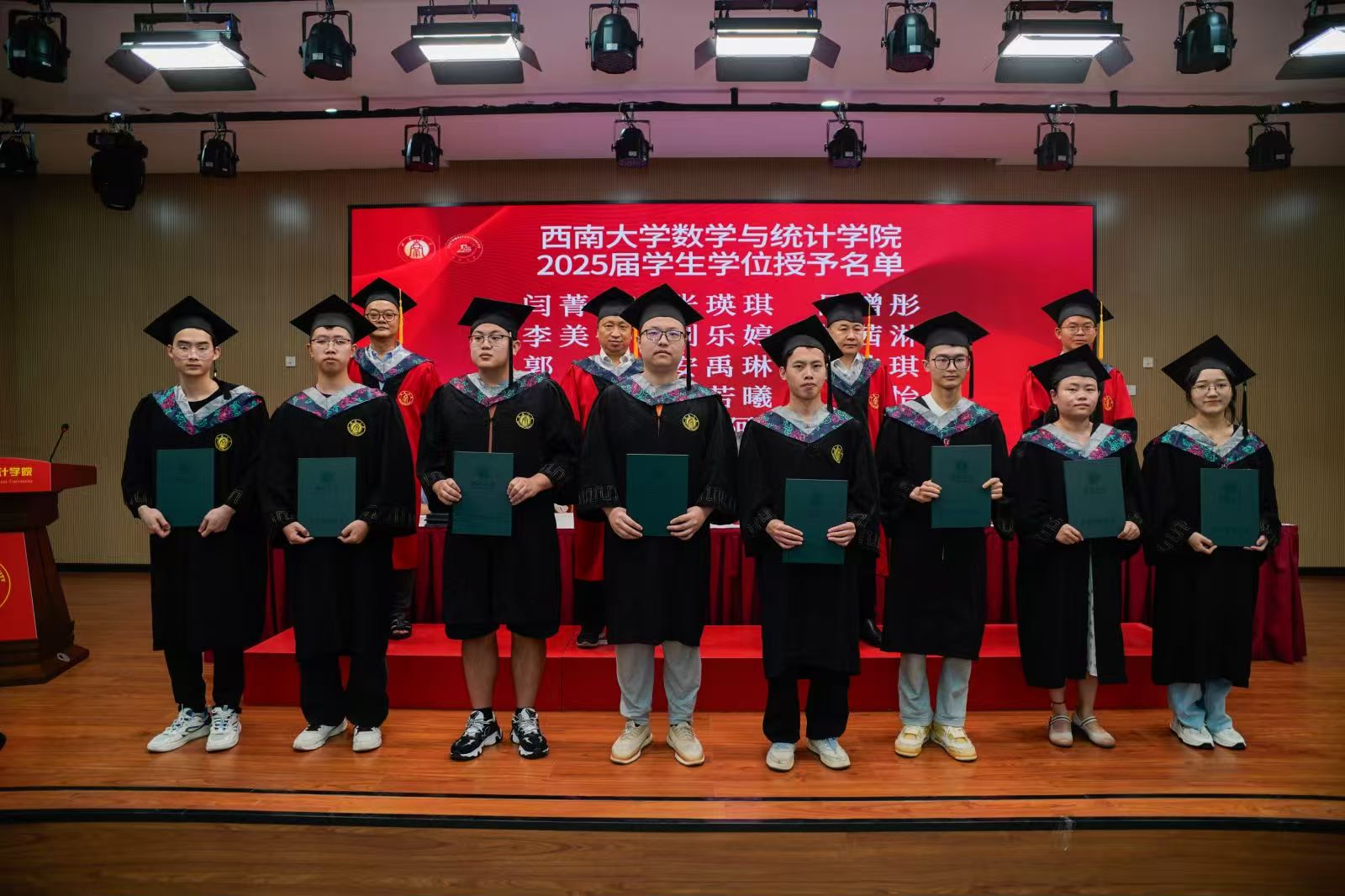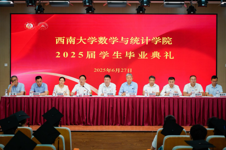 2025年6月27日下午,数学与统计学院2025届学生毕业典礼暨学位授予仪式在207报告厅隆重举行,庆祝408名本科生、103名硕士研究生及10名博士研究生圆满完成学业,开启人生新征程。365英国上市集团党委副书记武好明、国家级教学名师宋乃庆教授,学院领导班子成员、学术委员会成员、教师代表、家长代表与全体毕业生齐聚一堂,共同见证这一荣耀时刻。毕业典礼由学院党委书记唐宇主持,授位仪式由副院长商彦英执礼。