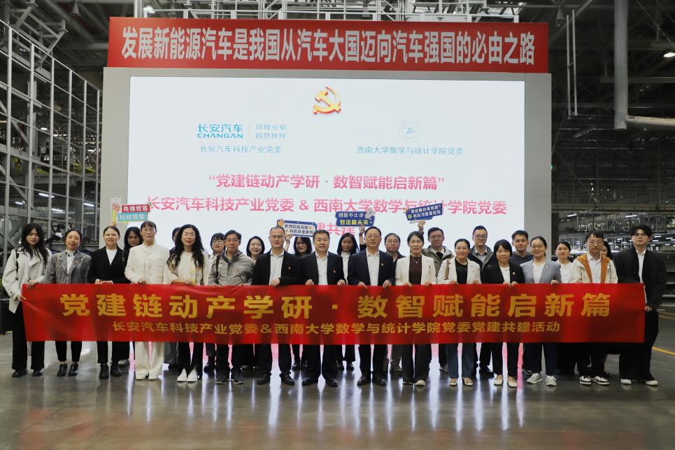 上午9点,学院一行抵达本次活动的首站——参观长安汽车数智工厂。高度自动化智能化的生产流水线,精准高效的机器人操作以及贯穿制造全流程的数据驱动管理,让师生党员感受到了现代工业与数智技术深度融合所迸发出的强大动能。大家对长安汽车在智能制造、数字化转型方面取得的成就表示赞叹,也对数学、统计学在工业实际场景中的应用潜力有了更为直观和具体的认识。