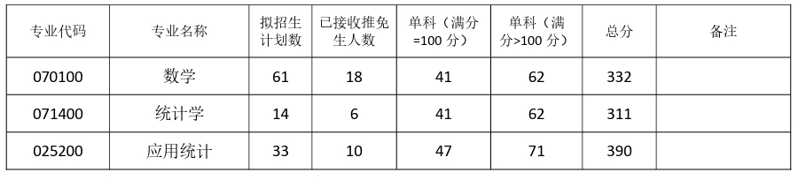 1. 以上分数线为普通计划分数线,少数民族高层次骨干人才计划、退役大学生士兵专项计划等专项计划由学校划定,并在学校研究生招生网公布。
